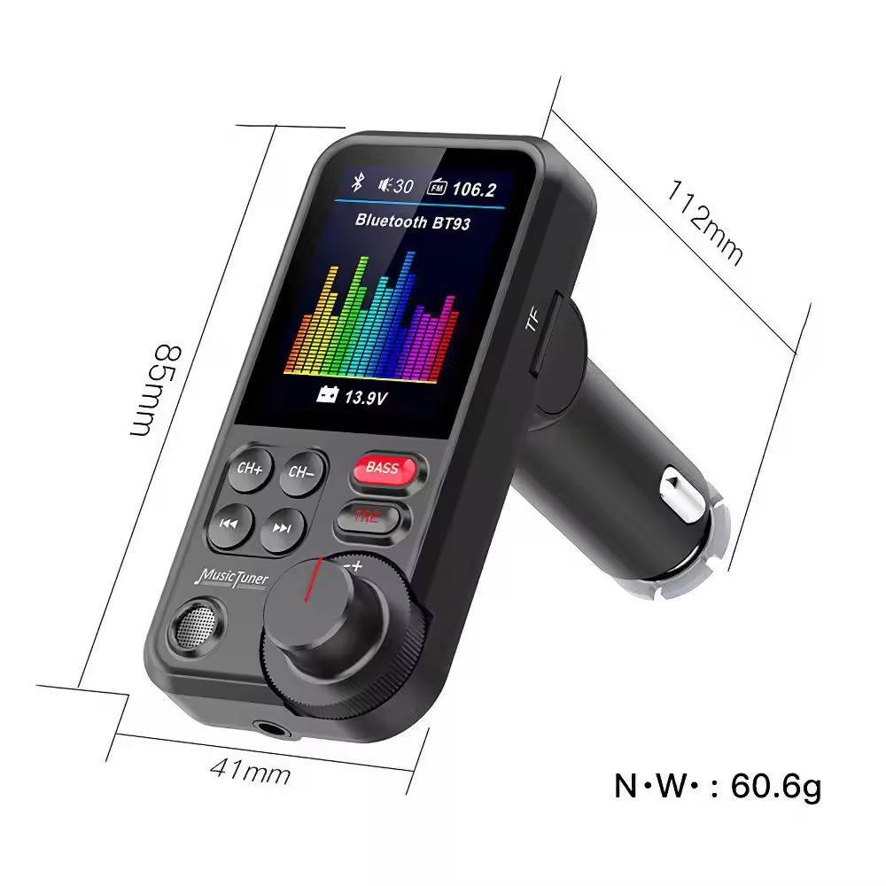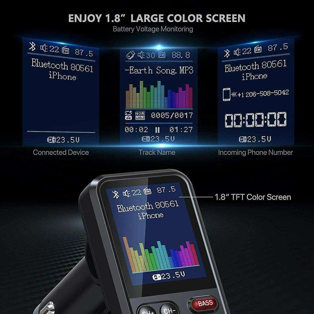 Carregador rápido, adaptador de rádio sem fios, leitor de música com graves, kit veicular com chamadas mãos-livres, suporte para unidade USB