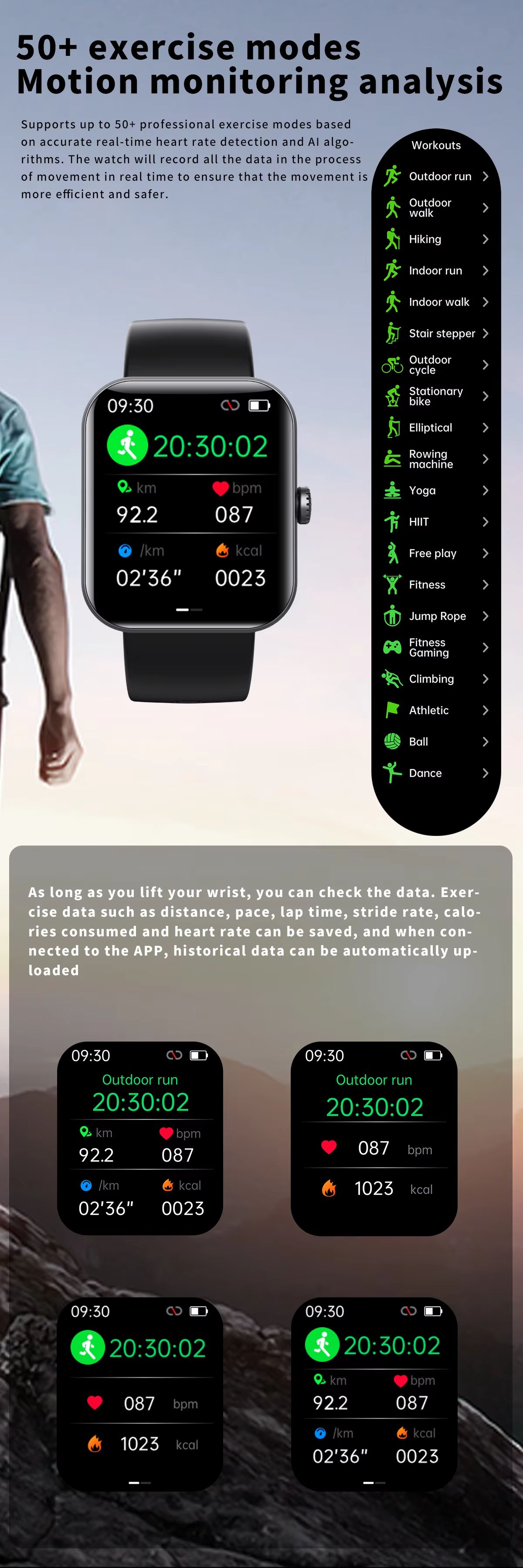 Relógio inteligente de saúde com monitor de ritmo cardíaco e cronógrafo