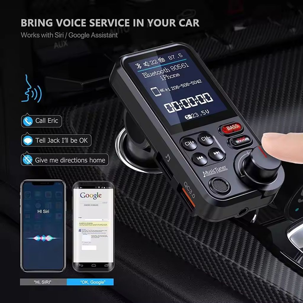Carregador rápido, adaptador de rádio sem fios, leitor de música com graves, kit veicular com chamadas mãos-livres, suporte para unidade USB