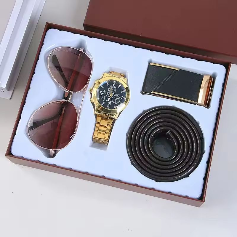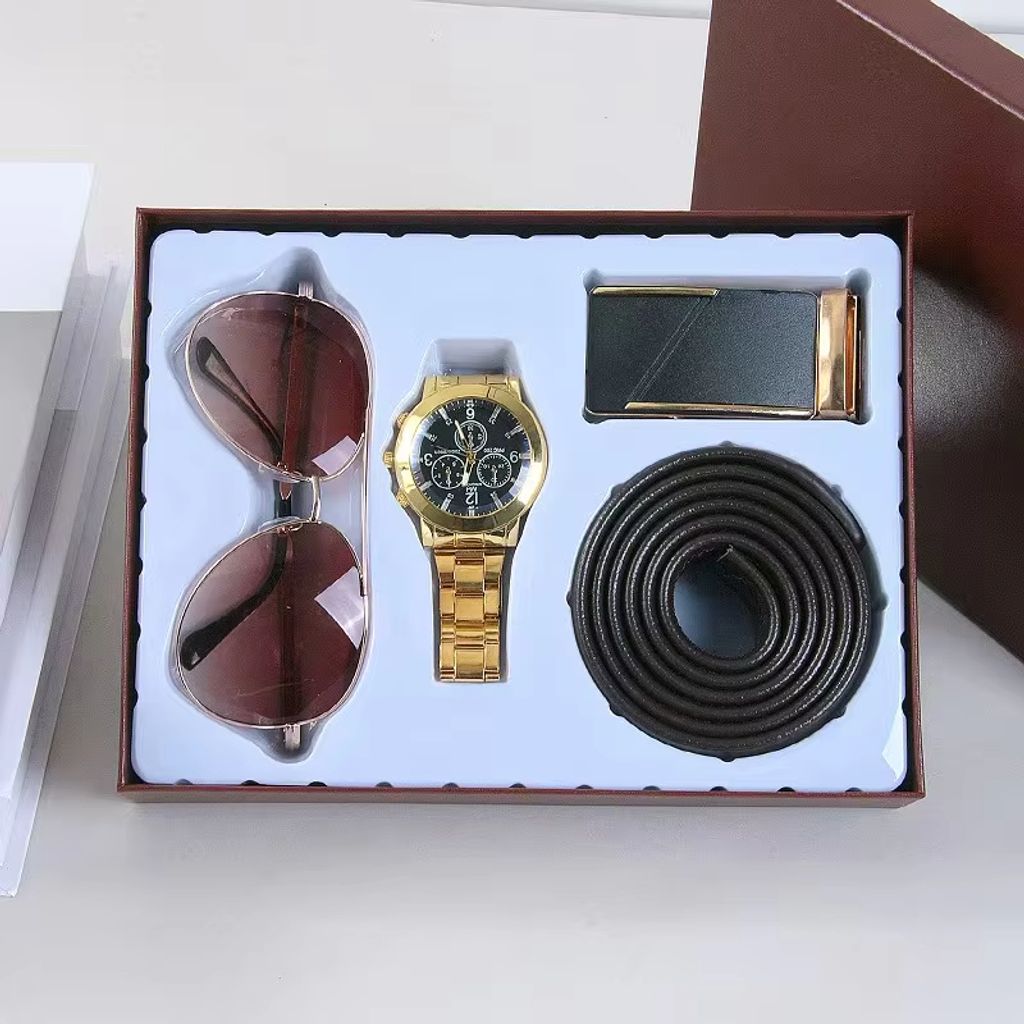 Conjunto de 4 peças de relógio à prova de água, porta-chaves, cinto e óculos de sol para homem para oferta