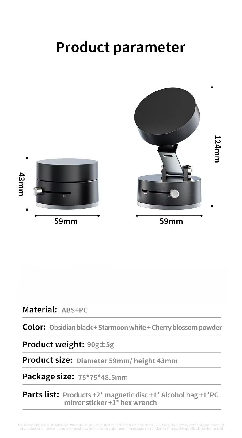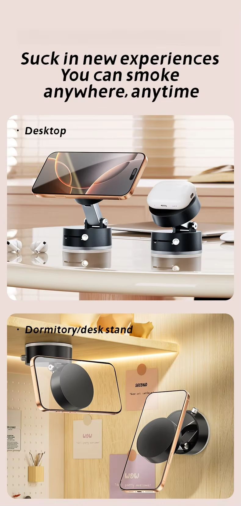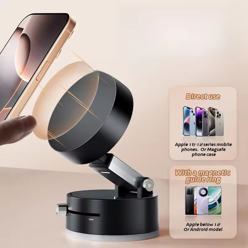 Suporte magnético preto para telemóvel com ventosa a vácuo forte e ângulo ajustável para casa e carro