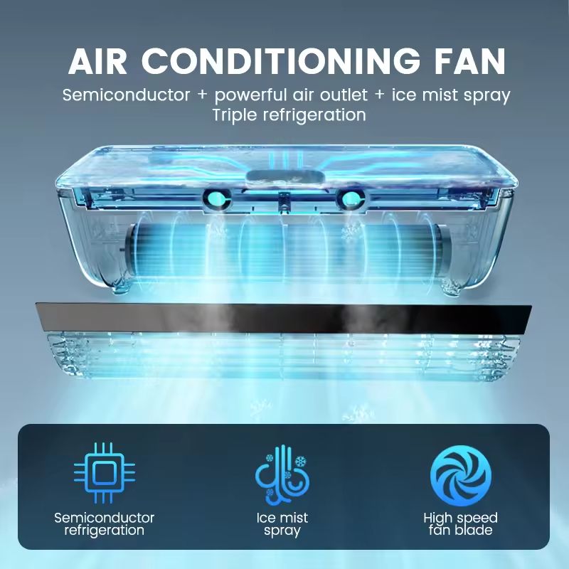 Ventilador de refrigeração elétrico de bancada recarregável de alta velocidade com nebulização de parede